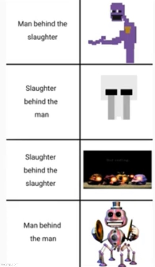 If you find this site serviceableness, please support us by sharing this posts to your preference social media accounts like Facebook, Instagram and so on or you can also Download this blog page with the title Fnaf The Man Behind The Slaughter Meme by using Ctrl + D for gadgets a laptop with a Windows operating system or Command + D for laptops with an Apple operating system. If you use a smartphone, you can also use the drawer menu of the browser you are using. Whether it's a Windows, Mac, iOS or Android operating system, you will still be able to bookmark this web.